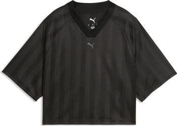 Subtle stripes elevate the sporty attitude of a boxy crop top with a jersey-inspired design.