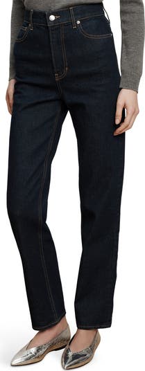 These dark-wash jeans offer a casual chicness that transitions from day to night in a modern mid-rise, straight-leg silhouette that transcends trends.