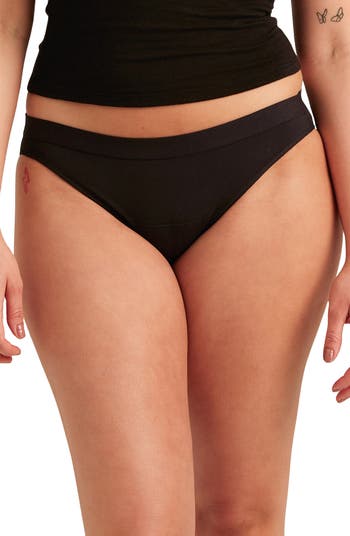 This slighty cheeky bikini—a customer favorite—are designed with a thin, absorbent lining that holds up to two tampons' worth of liquid. It is perfect for regular flow days, light bladder leaks or as a worry-free backup to a cup, disk or tampon. The soft, stretchy cotton moves with you and provides an all-day-comfy fit.