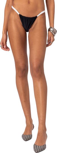 A barely there bikini bottom comes through in the beloved combo of rich black paired with bright white.