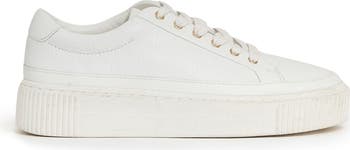 Polished grommets and a leather upper highlight the low-profile silhouette of a leather sneaker grounded by a chunky platform cupsole.