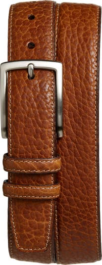 Contrast stitching brings rich, distinctive detail to this leather belt crafted in the USA with a rectangular buckle.