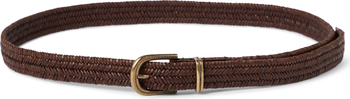 The woven design of the belt is made with refined calfskin leather, characterized by a rich, even grain. The small percentage of synthetic fiber makes the leather more elastic.