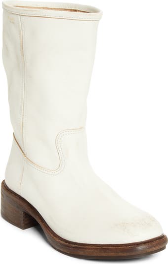 Tumbled leather and a scuffed toe give a well-loved look to this versatile boot subtly stamped with a foiled logo.