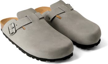 A polished buckle strap provides a classic finishing touch for this versatile leather clog.