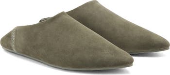 This pointed-toe footwear made from nubuck leather has a collapsible heel so that you can wear it as a mule.