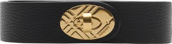 A slim belt made in Italy from grainy calf leather. The design is detailed with a gold-plated check-engraved closure, a signature of our Cotswolds collection.||Twist-lock closure|Hand-painted edges|Engraved Burberry lettering at closure|Comes with a dust bag
