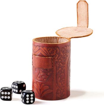 Leather Dice Cup Set - 6 Dice, Hand Tooled