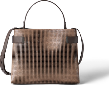 Sparkling leather is a refined material that, thanks to a sophisticated dyeing process, features a slightly metallic effect finish. The net-like structure is the result of a laser-cutting process.