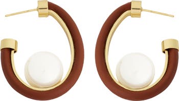 Switch up your hoops rotation with this alluring leather pair cradling a lustrous faux pearl.