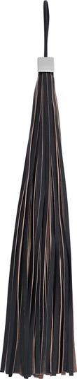 Geometric hardware highlights the swingy fringe on a leather charm perfect for affixing to your keys or favorite bag.