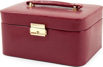 Goldtone hardware secures the lid of this leather jewelry box that offers plenty of storage and organization for your favorite pieces.