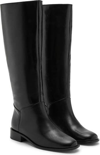 Glossy bovine leather brings a sleek finish to this minimalist knee-high boot set on a low block heel.