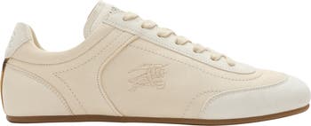 The Knight Runner is our latest signature sneaker, defined by its streamlined silhouette and minimalist details. Crafted in Italy from nappa leather and suede, the low-profile style is embroidered with a tonal Equestrian Knight Design and features Burberry Check webbing at the heel. The thin rubber sole is finished with a check tread for extra grip underfoot.||Lace-up closure|Printed Burberry lettering at tongue|Burberry Check at sole|Comes with a dust bag