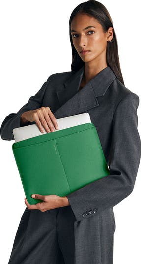 A sleek and ultra-secure statement to house your work-from-anywhere prerequisites. The Laptop Sleeve is a minimalistic companion crafted entirely from full-grain pebbled leather and built with three precisely measured compartments for immovable protection of your laptop, cables, and accessories.