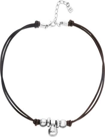 Leather necklace with three sterling silver-plated dials. Three silver spheres orbiting together, held together by leather to keep you grounded in your essence.