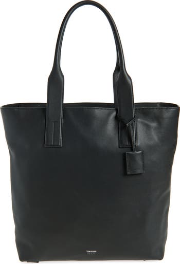 Subtly insinuated branding keeps the look clean for this practical north/south tote made in Italy from softly grained calfskin.
