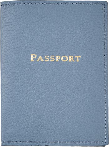 Finely textured leather highlights the slender profile of a convenient passport cover featuring left and right interior pockets designed for your essential travel documents.