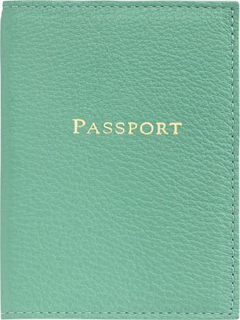 Finely textured leather highlights the slender profile of a convenient passport cover featuring left and right interior pockets designed for your essential travel documents.