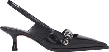 As the seasons change, Maje creates accessories imbued with elegance and sophistication for a stylish way to set off your look.These smooth leather pumps feature a graphic strap embellished with metal eyelets and a signature buckle. The discreet elastic at the back ensures support and comfort all day long.Pair them with a long black skirt for the perfect balance of sophistication and boldness.