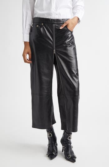 Chris Leba stays true to his rebellious nature but adds an element of the unexpected to these lookbook-featured lambskin-leather pants with a functional zipper down the front for a skirted aesthetic.