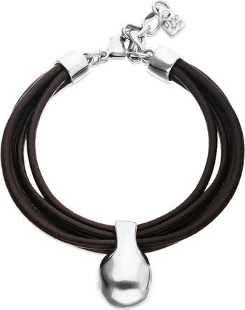 Leather bracelet with sterling silver-plated dial. A leather line that hugs your wrist, culminating in a silver dial that connects you with the essentials.