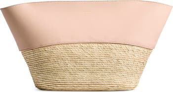 Simple, spacious and sleek, the Basket Clutch takes silhouette cues from the brand's popular totes and is made with a woven straw base and a foil-branded leather top band.