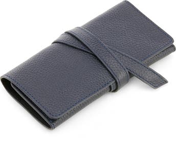 Richly textured nappa leather defines a travel-ready organizer outfitted with a large interior pocket and various loops to secure your valuables and tech essentials.