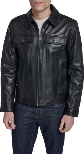 This leather trucker jacket is cut from supple lamb leather that feels soft yet structured. A classic spread collar, chest snap-flap patch pockets and side welt pockets complete the look, delivering timeless style with everyday versatility.