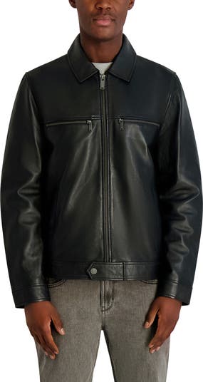 Sleek and structured, this jacket is cut from supple leather for a polished, modern feel. Chest and front pockets add a utilitarian touch, while the collared design keeps the look sharp and refined.