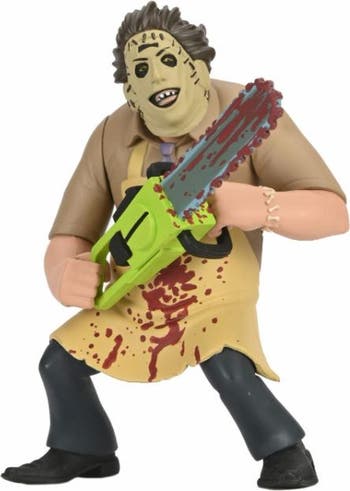 Leatherface (Bloody) (Texas Chainsaw Massacre) 50th Anniversary 6" NECA Toony Terrors Action Figure. Bring the fun of Saturday morning cartoons to your horror collection with the adorable little creeps of Toony Terrors, NECA's line of stylized horror icons! We are thrilled to kick off the 50th anniversary of the 1974 film Texas Chainsaw Massacre with this Leatherface 6-inch scale action figure. A fresh take on our classic Leatherface, this version features new bloody deco and updated chainsaw deco. It comes in commemorative 50th anniversary blister card packaging with a cut-out cardback featuring original art by NECA painter Geoff Trapp
