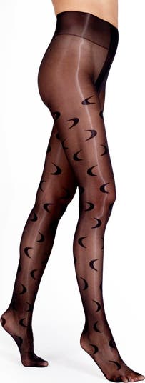 Finish off any look with these sheer tights featuring a mystical moon pattern.