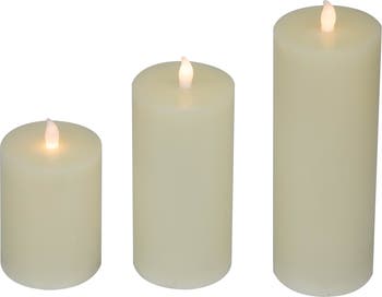 LED Flickering Flameless Pillar Candles - 8.75" - Cream - Set of 3