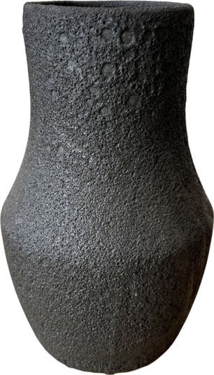 The Ara Crater Vase is skillfully crafted from high-quality porcelain clay and coated with a unique frothy, bubbly glaze. Due to the porous and textured nature of the glaze, each vase has its own one-of-a-kind appearance. This distinctive glaze is only suitable for dry floral arrangements and is not intended for holding water.