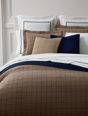 Tailored and timeless, the Ledger duvet cover set recalls the brand's classic menswear through its thoroughbred-inspired windowpane plaid pattern. The cotton-twill fabric is treated for a peached finish, offering an ultrasoft hand.