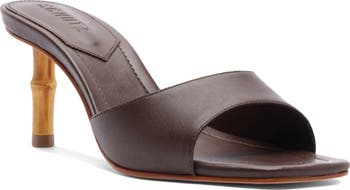 A natural bamboo heel adds height and whimsical style to this minimalist sandal topped with a smooth leather strap.
