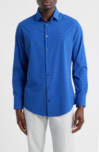 Leeward No Tuck Trim Fit Plaid Performance Button-Up Shirt