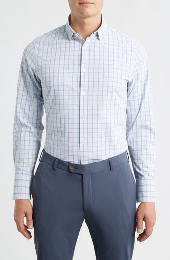 Stretchy, sweat-wicking fabric keeps you moving comfortably day and night in a shirt designed with a low hem that stays tucked when you want and looks great when you leave it out. The wrinkle-resistant finish makes it a crisp foundation for any casual-semiformal look.