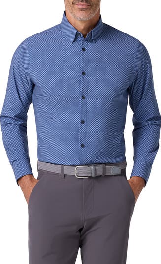 Leeward Trim Fit Diamond Print Performance Button-Up Shirt