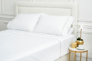 With double marrow Champagne embroidery on 400-thread-count long-staple cotton percale, this piece from our Legacy collection exemplifies the tailored and refined style of a penthouse suite. The Legacy collection is crisp, breathable, and specially washed for a soft, smooth feel.