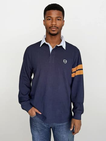 Take control of your casual style with this refreshed, standout version of the classic rugby shirt. The Legacy Rugby Shirt pays tribute to varsity icons with two bold orange stripes on the left arm, a subtle yet striking nod to team captains of the past. Crafted from 100% mid-weight cotton and finished with premium rubber buttons down the front placket, this style is built for all-season wear and enduring comfort. We love the traditional contrasting white collar that can be styled up or down depending on the look. Wear with a blazer or on its own, this look will never go out of style.