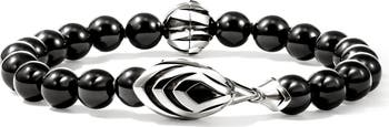 A sapphire-eyed eagle represents freedom and independence on this bracelet of black onyx beads and hand-carved sterling silver.