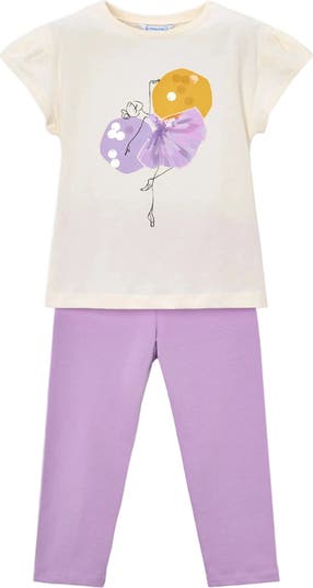 A playful ensemble designed with cheerful detailing, this set blends comfort with a touch of whimsy. Its decorative accents make it perfect for everyday wear. Short-sleeved top with balloon motif and bow accent for added charm. Solid leggings that complement the design for a coordinated look.