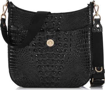 Glazed, croc-embossed leather and gleaming hardware bring modern polish to a crossbody bag spacious enough to carry just the daily essentials in sleek style.