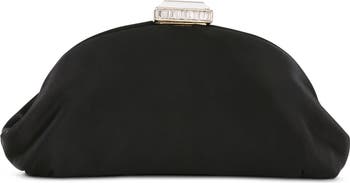 Elevate your evening look with the classic style crafted from luxurious 100% silk, offering a smooth and sophisticated feel. The simple, yet elegant design is enhanced by gold-tone hardware and a removable gold chain, allowing for versatile carrying options. A large rectangular crystal knob adds a touch of glamour, while the clasp closure keeps your essentials secure.