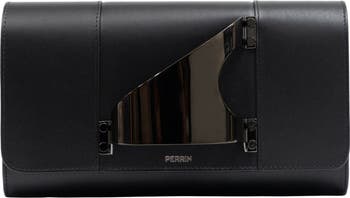L'EIFFEL CLUTCH, Inspired by the architecture of The Eiffel Tower, this sleek glove clutch with metallic hand piece makes a bold statement from day to evening. The clutch can be worn comfortably on either right or left hand.