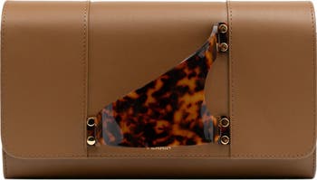 L'EIFFEL CLUTCH, Inspired by the architecture of The Eiffel Tower, this sleek glove clutch with a tortoiseshell acetate hand piece makes a bold statement from day to evening. The clutch can be worn comfortably on either right or left hand.