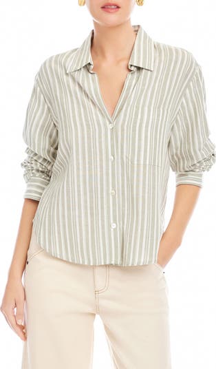 Soft stripes enliven this lightweight linen-kissed shirt framed by dropped shoulders for a relaxed fit.