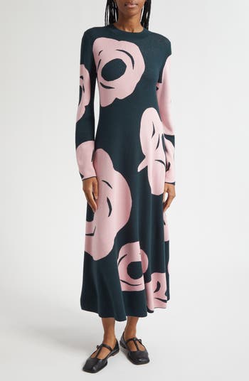 Leikkuu Tumma Floral Long Sleeve Sweater Dress