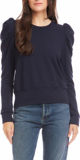 Puff shoulders volumize the sleeves of a versatile top made from soft and stretchy modal-blend fleece.